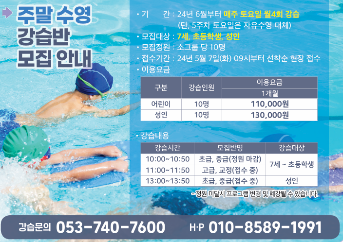 주말 수영 강습반 모집안내 > 공지사항 Group Exercise 공지사항 FAQ Q&A 고객의 소리 주말 수영 강습반 모집안내 제드피트니스 2024.11.08 hit 1,076 - 주말 수영 강습반 모집안내 - 이전글등록된 글이 없습니다. 24-25년도 초/중/고/대학생을 위한 겨울방학특강다음글 목록